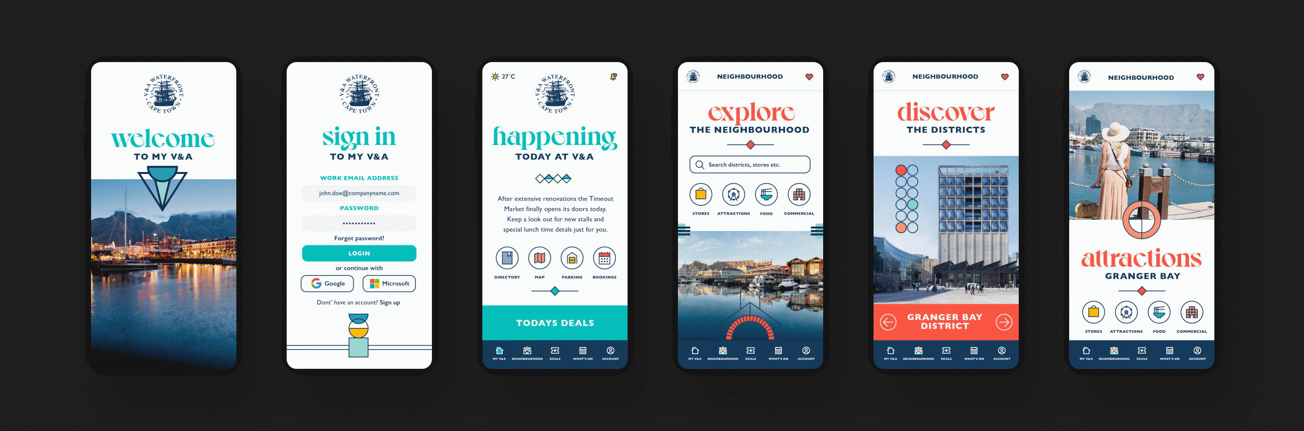 • V&A Waterfront Tenant App – A UI/UX transformation that improved navigation, accessibility, and functionality for businesses and tenants.